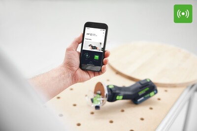 Свързвайки се с приложението Festool, можете да видите различни данни за машината, като например последното местоположение. Освен това бързо ще намерите подходящи принадлежности и полезни съвети. Освен това могат да се извършват софтуерни актуализации или да се създаде заявка за ремонт при нужда от сервизно обслужване.